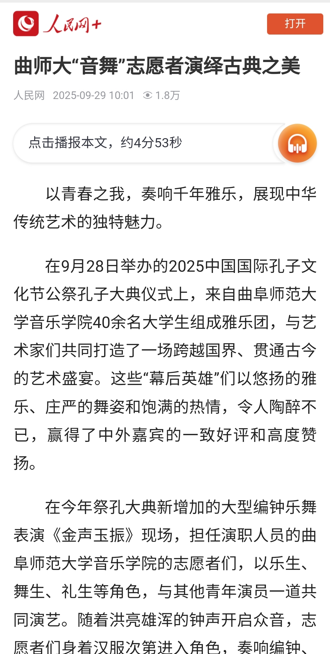 据了解,2025中国国际孔子文化节由山东省人民政府、文化和旅游部、中国联合国教科文组织全国委员会联合主办,举办地为山东省济宁市曲阜市,自1984年以“孔子诞辰故里游”为起点,历经40多年的传承发展,已成为享誉全球、跨越国界的文化盛典。三亿网页版登录入口音乐学院选派志愿者参加孔子文化节乐舞有关活动,这还尚属首次。