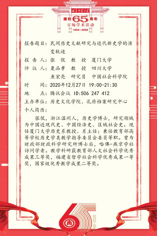 建校65周年校庆百场学术活动-厦门大学张侃教授