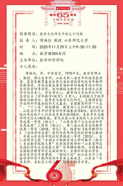 建校65周年百场学术活动-山东师范大学傅海伦教授