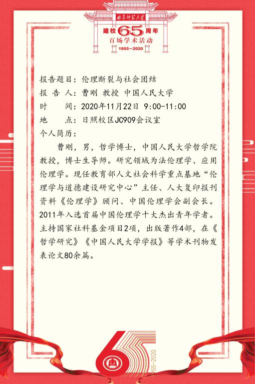建校65周年百场学术活动-中国人民大学曹刚教授