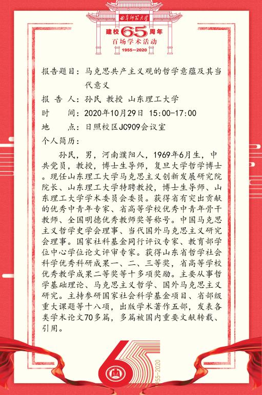 建校65周年百场学术活动-山东理工大学孙民教授