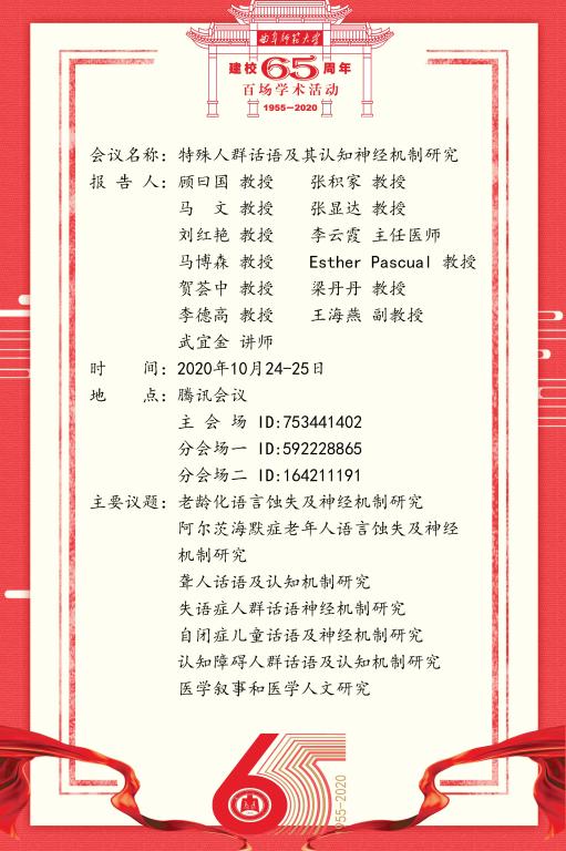 建校65周年百场学术活动-第四届特殊人群话语及其认知神经机制研究求索论坛