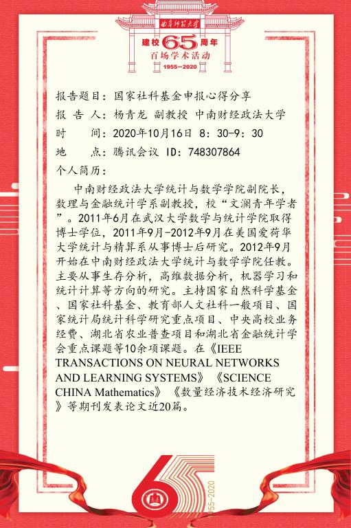 建校65周年百场学术活动-中南财经政法大学杨青龙副教授