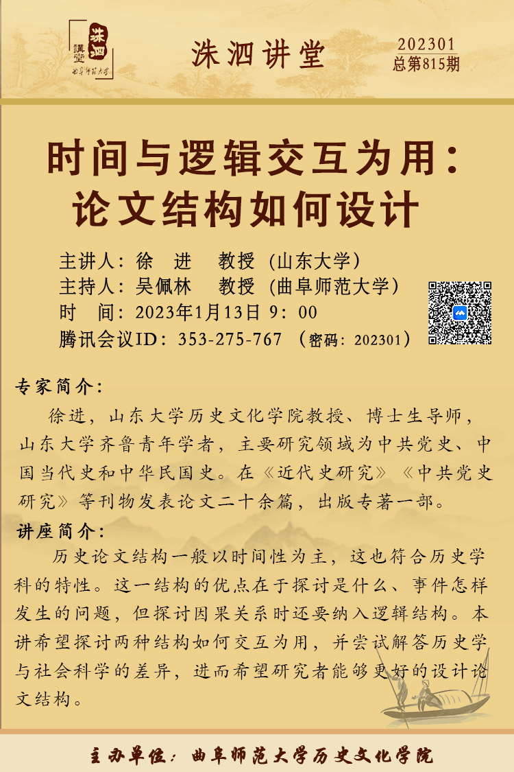 洙泗讲堂预告|徐进:时间与逻辑交互为用:论文结构如何设计