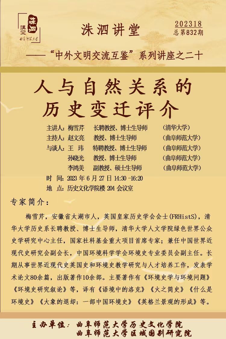 洙泗讲堂预告|梅雪芹:人与自然关系的历史变迁评介