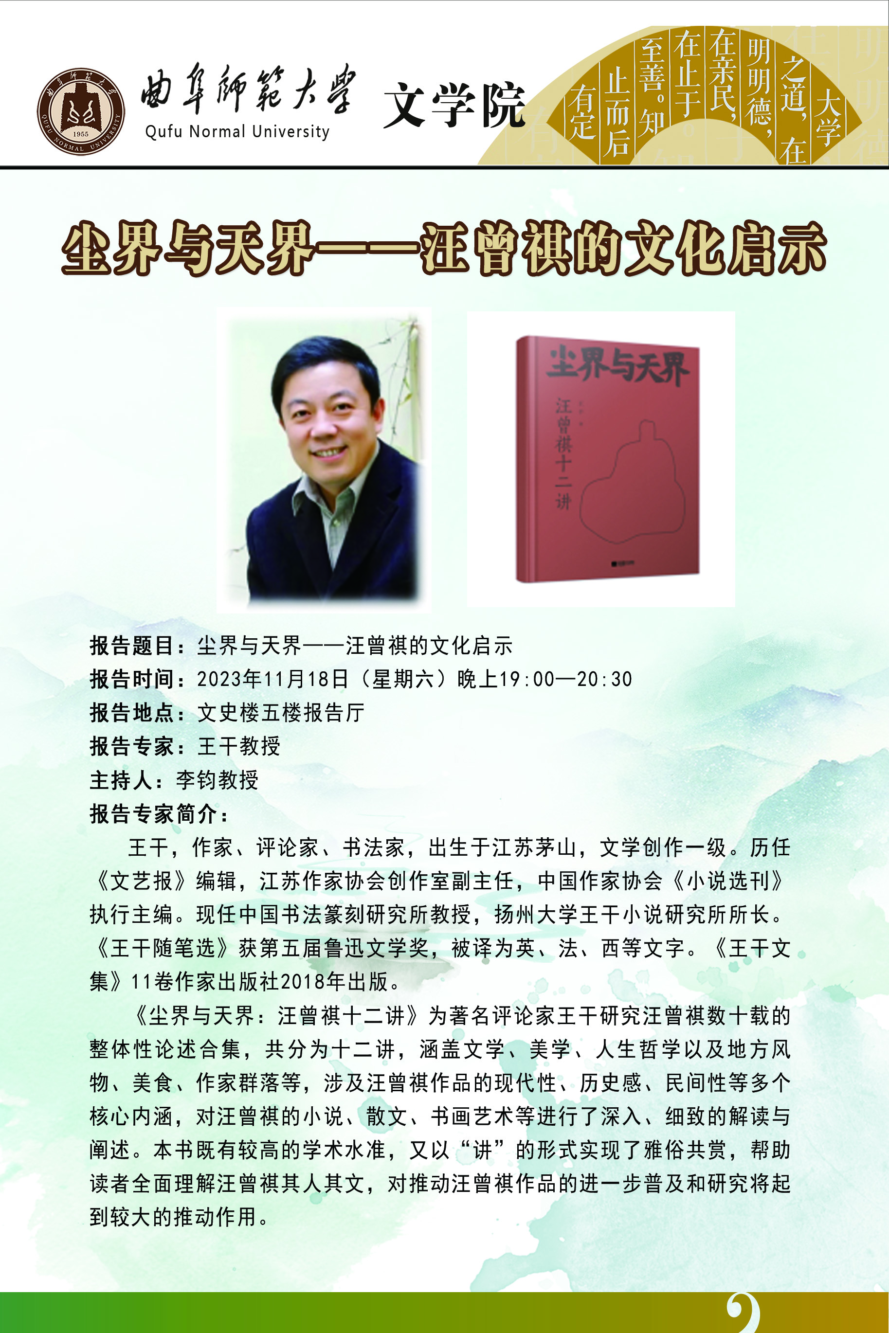文学院学术报告预告:尘界与天界——汪曾祺的文化启示