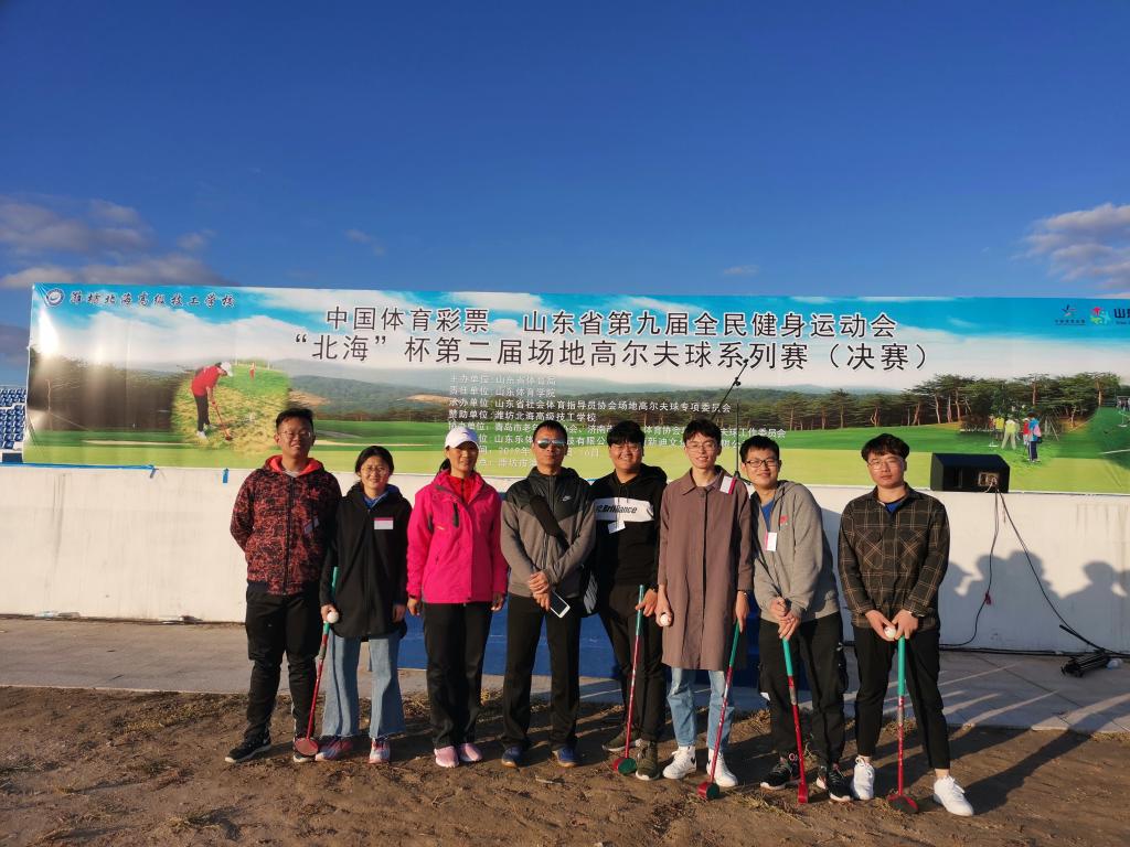 10月14日至15日,由山东省体育局主办的山东省第九届全民健身运动会“北海杯”第二届场地高尔夫系列赛决赛在潍坊举行。在我校体育教学部主任杨弢教授、周慧老师、王哲老师带领下,我校6名运动健儿组成的代表团荣获大学生组团体成绩一等奖(第二名)