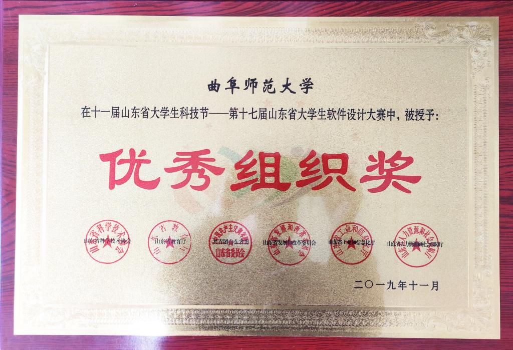 12月22日,山东省第十一届大学生科技节暨第十七届山东省大学生软件设计大赛颁奖典礼在济南举行。我校软件学院、信息科学与工程学院学生在该项赛事中取得优异成绩,共获得一等奖十一项、二等奖十六项、三等奖三十项。我校被大赛组委会评为优秀组织单位。