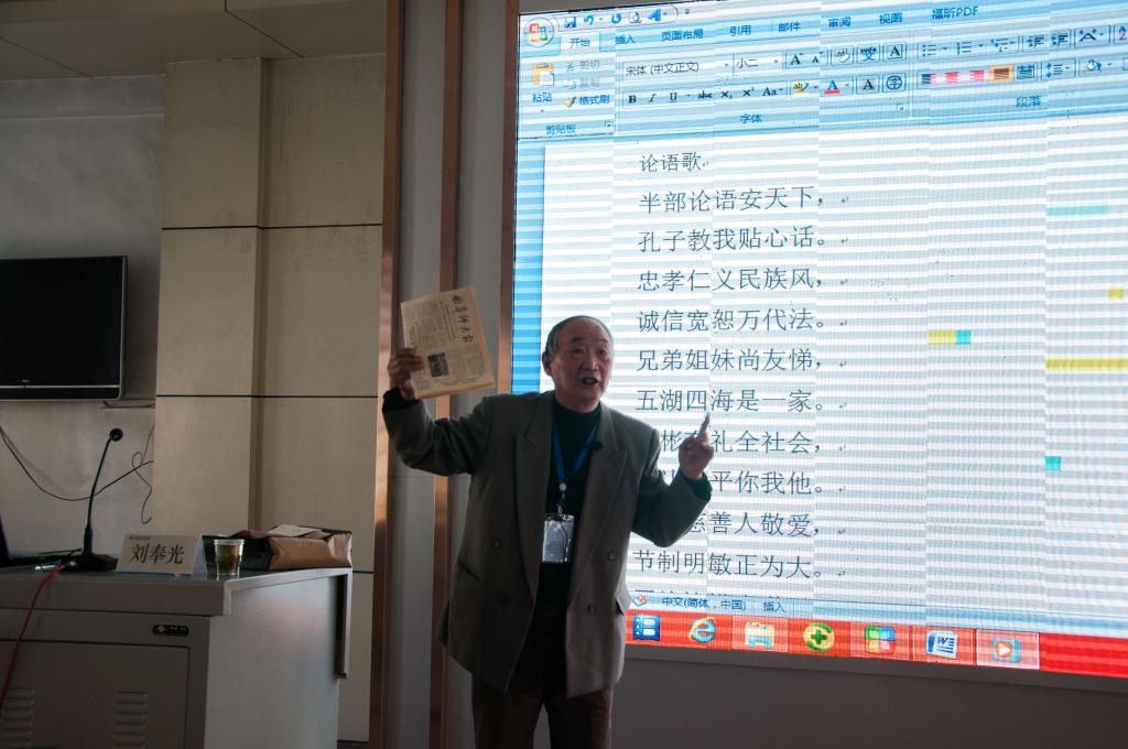 典礼上,与会嘉宾向服刑人员捐赠了经典传统文化图书。典礼结束后,刘奉光教授为服刑人员讲授了传统文化课,用儒家长者和蔼的语气,讲述儒家经典文化中为人处世、仁爱友善、建功立业的故事。讲课现场刘奉光教授还演唱并教授自己编写的论语歌曲,受到学员好评。