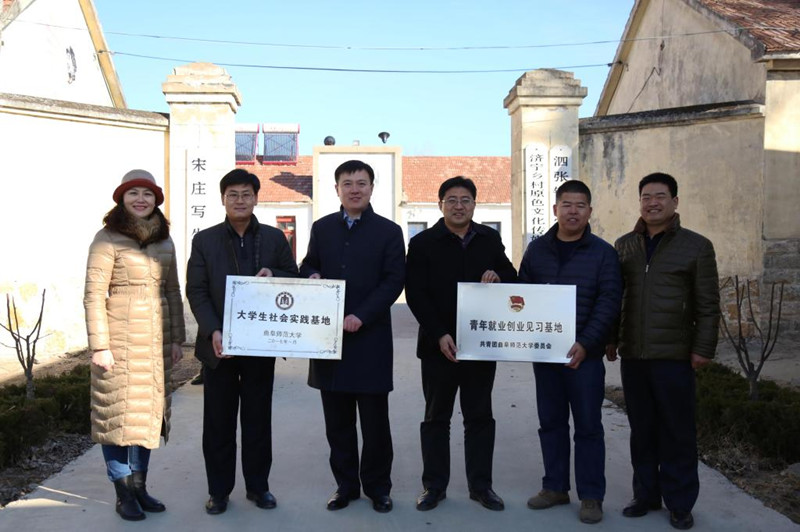 1月14日,“三亿网页版登录入口青年就业创业见习基地”、“三亿网页版登录入口大学生社会实践基地”挂牌仪式在泗水县泗张镇宋庄写生基地举行。我校团委书记屈跃宽,书法学院党委副书记石倩、团委书记杨玉强,泗张镇党委书记韩光辉、镇长王强,宋庄写生基地负责人张涛及书法学院学生代表参加了仪式。