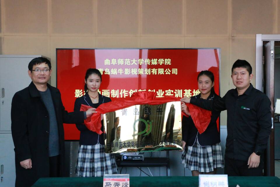 12月1日,青岛蜗牛影视公司——三亿网页版登录入口影视动画制作人才培养基地揭牌仪式在我校顺利举行,传媒学院院长马秀峰、副院长王焕景,教务处副处长张全景,青岛蜗牛影视策划有限公司CEO 崔明鹏、经理崔叶涛以及招生就业处、传媒学院相关师生出席揭牌仪式。