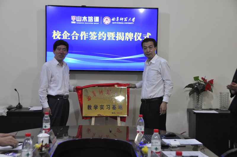 5月19日上午,翻译学院在山木培训集团建立教学实习基地揭牌暨“山木创新创业教育基金”设立仪式在山木培训(中国 济南)大观园校区举行,我校学生处、日照校区学生工作办公室、翻译学院、信息科学与工程学院相关负责人及山木培训集团总裁王总、人才部负责人参加活动。