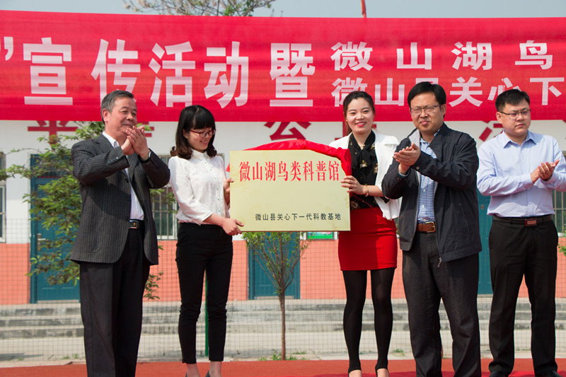4月22日,第35届爱鸟周宣传活动暨“关心下一代科教基地”微山湖鸟类科普馆开馆。我校生命科学学院副院长杨月伟、微山县关心下一代委员会主任张启广、微山县团委书记时晨、微山县林业局湿地办公室主任刘淑荣、留庄镇党委政府相关负责人出席活动。
