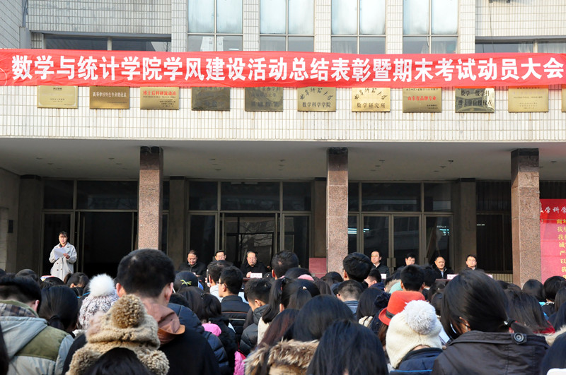 12月29日下午,数学科学学院、统计学院2015年学风建设月总结表彰暨期末考试动员大会举行。教务处、团委、数学科学学院、统计学院相关负责人出席大会。