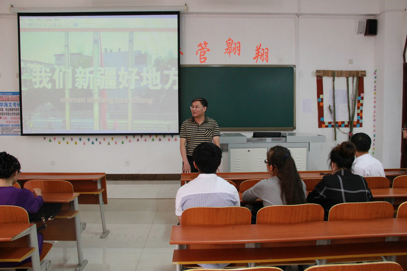 胡长春书记来到会场就和大家聊起了天,他在讲话中强调,今年是新疆维吾尔自治区成立60周年,新疆60年的发展取得了巨大的成就。他这次来就是和同学们来一起学习新疆,一起了解新疆。杨兴防副书记在发言中希望同学们和汉族同学搞好团结,努力学习,并询问大家生活和学习上有无困难。会上,大家一起学习了“我们新疆好地方”电子月刊。校学生会副主席、2012级新疆籍同学迪力木拉提结合学习材料,向同学们介绍了新疆在教育、科技、社会经济各方面取得的发展成就。他表示新疆正在大力发展双语教育,而这些就需要像同学们这样受过高等师范教育的人才。他在交流会中还向同学们介绍了“一带一路”倡议并向同学们展示了新疆飞速发展的经济形势,最后他总结道“只有民族团结才能促进新疆更快更好发展。”