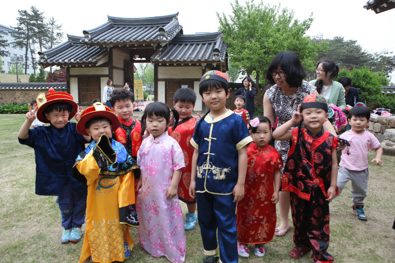 易东书院是安东大学校内保存的一处古代书院遗址,校内或社会上许多韩国传统文化活动比如成人礼等也多在此处举办,也是此次安东孔院“礼乐周间”活动的主会场。13日下午,孔子学院韩方院长李润和与中方院长潘丽丽带领孔院全体教职工将易东书院布置成感受中国传统文化的体验场所,为“礼乐周间”活动拉开序幕。精致典雅的旗袍,五彩纷呈的民族服装,质朴洁净的瓷杯,浓郁飘香的普洱茶,让前来体验参观的学生和民众都赞不绝口,纷纷加入到试穿试饮的行列中去。