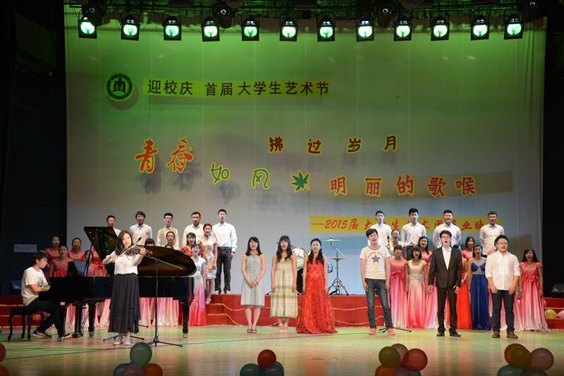 5月17日晚,由学生工作处主办,大学生艺术团承办的迎校庆·首届大学生艺术节“青春如风,拂过岁月明丽的歌喉”——2015届大学生艺术团毕业生晚会落幕。各学院师生齐聚一堂,共同送别艺术团毕业生,现场气氛十分热烈。