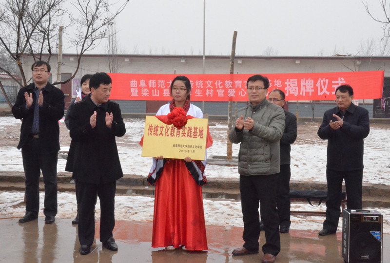 1月25日,历史文化学院传统文化教育实践基地暨梁山县大学生村官爱心服务站揭牌仪式在梁山县黑虎庙镇师庄村举行。我校团委书记、历史文化学院以及梁山县委、梁山县团委、黑虎庙镇相关负责人出席了活动并为传统文化教育实践基地和大学生村官爱心服务站揭牌。