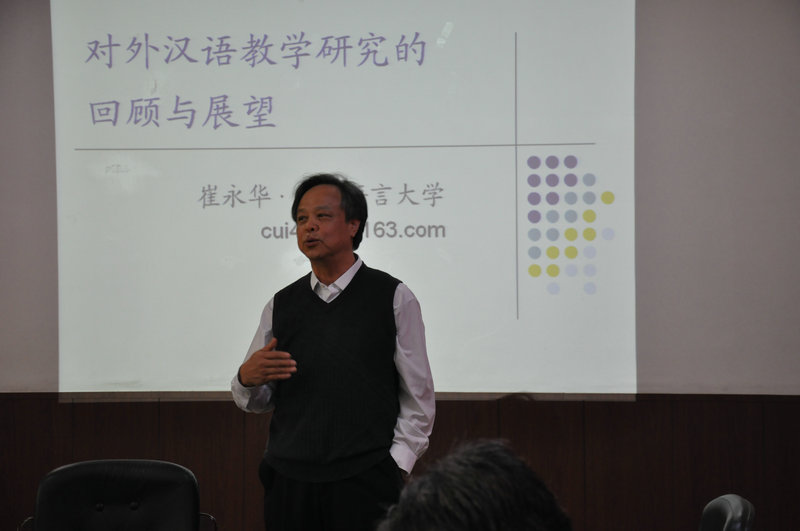 4月16日,北京语言大学教授崔永华先生应邀在文学院做了题为“对外汉语教学研究的回顾与展望”的学术讲座,文学院负责人和相关专业师生聆听了讲座。