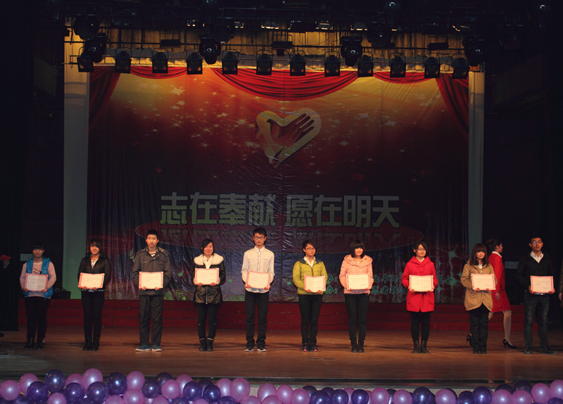 12月14日晚,我校举行“志在奉献 愿在明天”2013年度志愿者表彰会暨汇报演出。