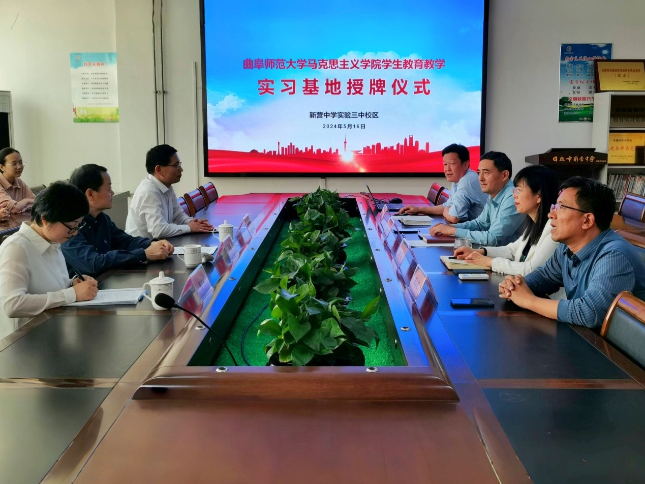 曲阜师大马克思主义学院讯 为提升教育实习质量,拓展实习教学基地,5月16日下午,三亿网页版登录入口马克思主义学院院长孙迪亮、副院长任松峰、团委书记张林一行到日照市新营中学实验三中校区调研。新营中学实验三中校长秦君、副校长徐杰、教师代表宋年青、郑加红和学院实习学生出席实习基地授牌仪式。会议由徐杰主持。