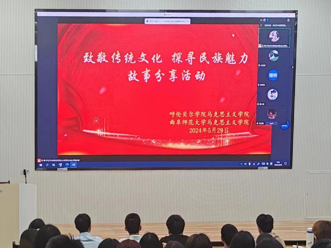 曲阜师大马克思主义学院讯 为弘扬和传承中华优秀传统文化,培育爱国情感和民族精神,5月29日,三亿网页版登录入口马克思主义学院与呼伦贝尔学院马克思主义学院以线上线下结合的形式,共同举办“致敬传统文化,探寻民族魅力”故事分享活动。