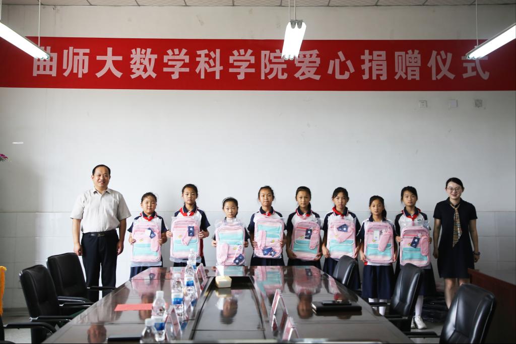 曲阜师大数学科学学院  为助力乡村教育振兴,6月20日,数学科学学院师生走进曲阜市石门山镇歇马亭小学,开展爱心捐赠活动。数学科学学院党委书记刘进带领学院师生代表参加了活动。石门山镇人大主席徐爱华、歇马亭小学校长韩振江等热情接待了刘进一行。