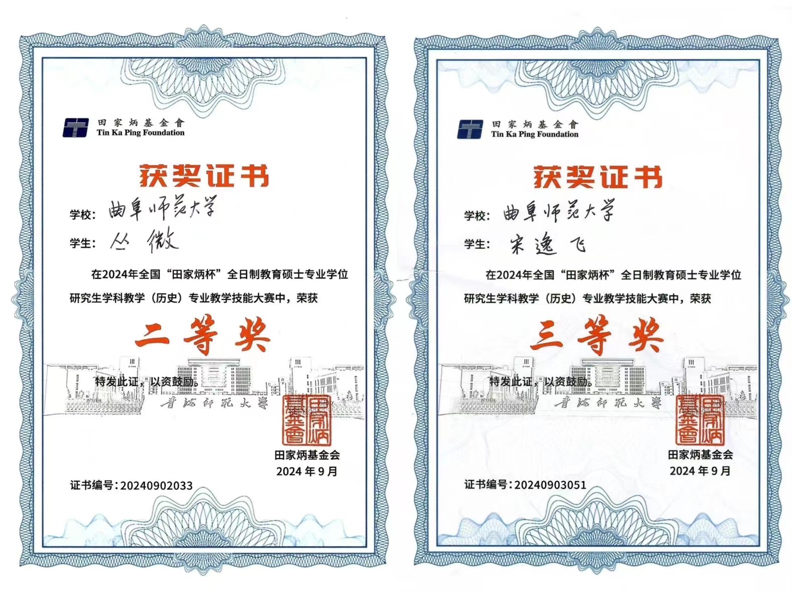 曲阜师大历史文化学院在2024年全国“田家炳杯”