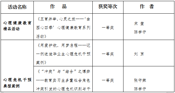 曲阜师大学生工作处讯 近日,山东省高等学校思想政治教育研究会、大学生心理健康教育专业委员会公布了2024年山东省高校心理健康教育月展示活动的评选结果,曲阜师大再获佳绩,共获得一等奖6项,二等奖6项,三等奖5项。
