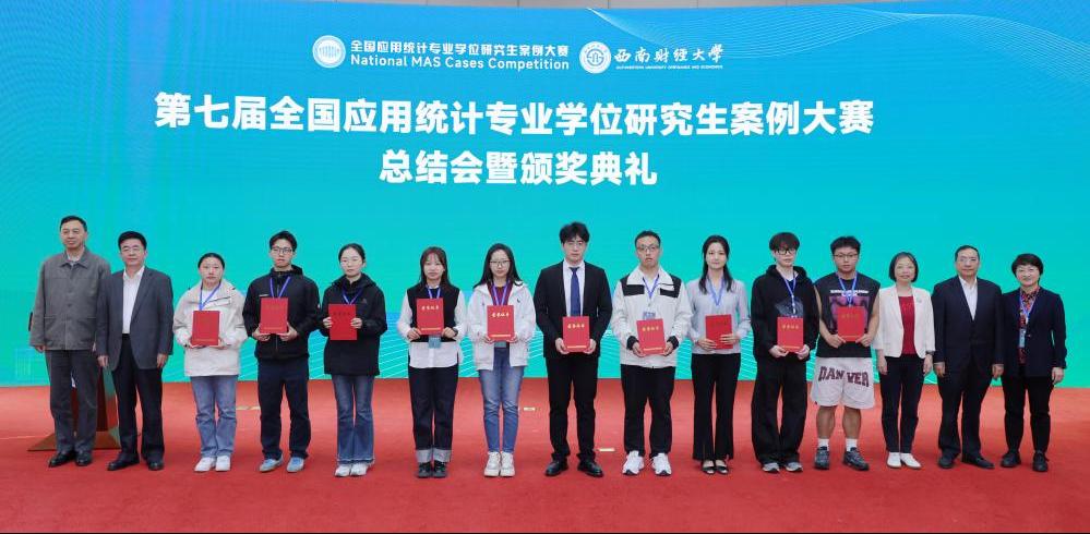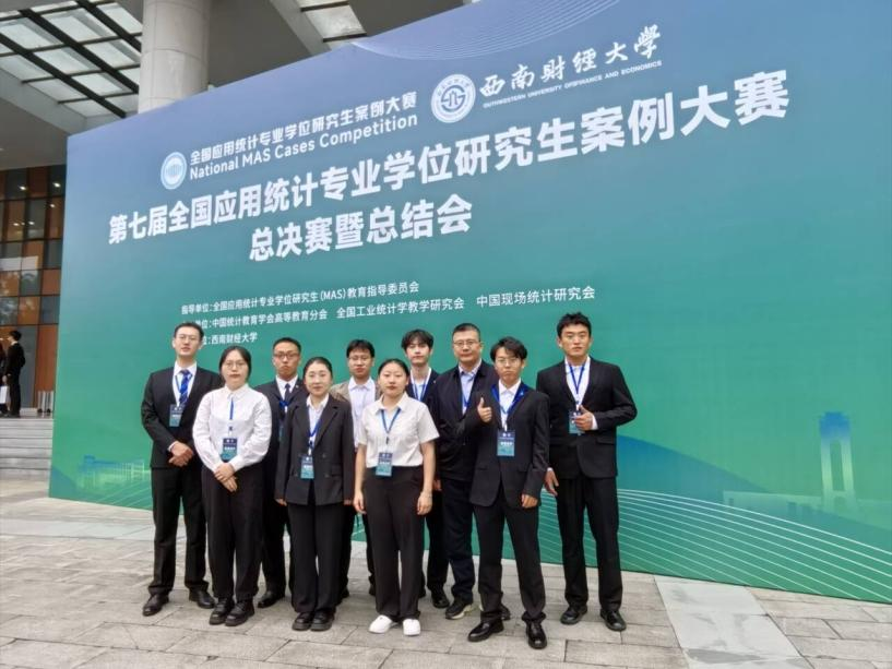 统计与数据科学学院讯  10月25日至27日,第七届全国应用统计专业学位研究生(MAS)案例大赛国家总决赛于西南财经大学圆满落幕,由统计与数据科学学院赵胜利教授指导的2022级研究生庞光鹏、曹盈娜、许杨荣获国家一等奖(入库),王文武教授指导的2023级研究生常芮源、翟洪毅、林煊煊荣获国家一等奖(入库),赵翔华副教授指导2023级研究生闫浩杰、臧延洪、程豪荣获国家二等奖,共斩获一等奖两项和二等奖一项,曲阜师大是本次大赛中唯一获得两项一等奖的高校。