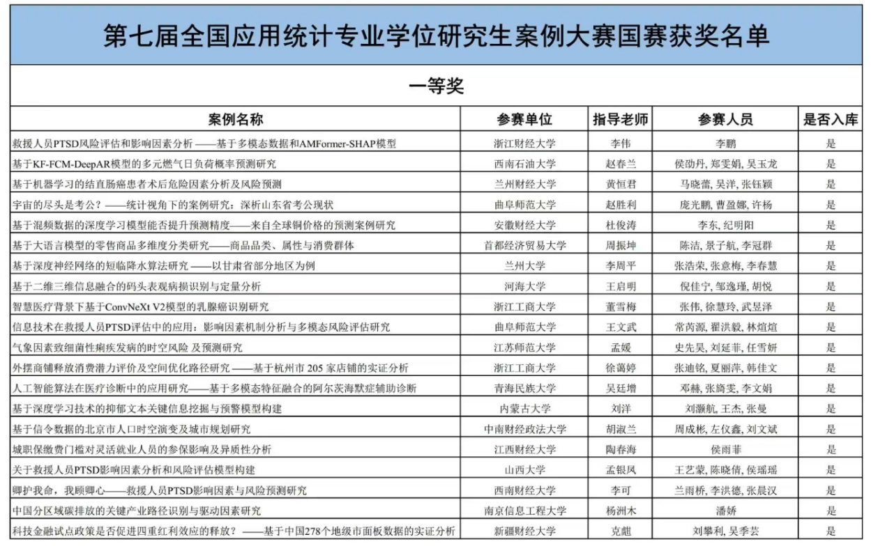 此次大赛的优异成绩,充分展示了学校在统计学科领域的卓越实力和人才培养成果,为今后研究生教育教学工作注入了新的动力和信心。统计与数据科学学院将继续秉承“学而不厌,诲人不倦”的校训精神,致力于培养具有国际视野和创新精神的高素质统计人才,为推动我国统计事业的发展做出更大的贡献。