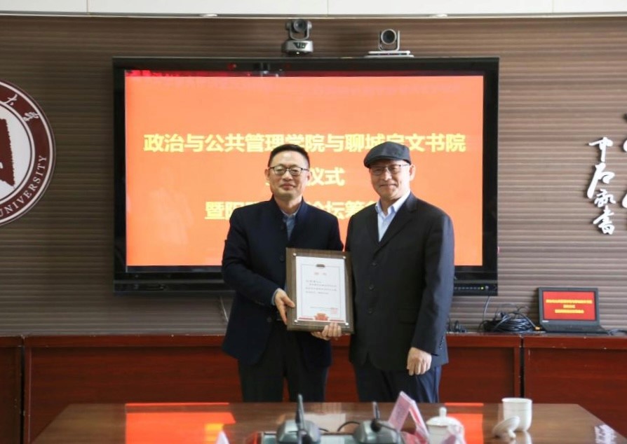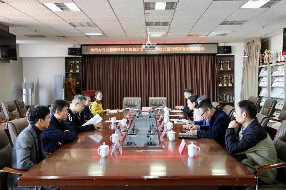 曲阜师大政治与公共管理学院讯 10月24日,为进一步推进“学院”+“书院”双院育人实践,全面培养更多具有创新精神和实践能力的高素质人才,政治与公共管理学院与聊城启文书院开展深度合作,举行签约仪式暨阳明高端论坛筹备座谈会。聊城启文书院院长刘庆涛、政治与公共管理学院党委书记卢瑞霞、院长李增元、副院长刘伟以及相关教师出席会议。会议由刘伟主持。