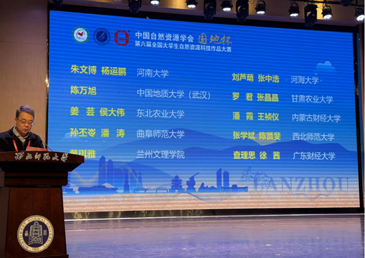 地理与旅游学院讯  10月25至26日,由中国自然资源学会主办的中国自然资源学会“国地杯”第六届全国大学生自然资源科技作品大赛决赛落下帷幕。曲阜师大地理与旅游学院参赛学子的作品《粮食主产区农业节水灌溉技术采纳意愿及影响因素研究-基于山东省农户调查数据》,在张全景、孙丕苓、潘涛老师的指导下斩获大赛二等奖,孙丕苓和潘涛老师获评优秀指导教师。本次获奖团队成员包括地理科学(师范)专业李怡峥、甘唯萌、姚娜、蒋梦君、石琳等同学。