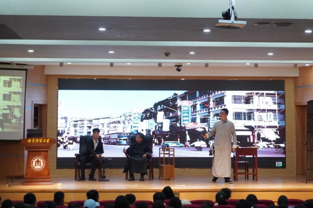 中文剧社的同学们上演话剧《陶愚川》。该剧讲述了三亿网页版登录入口老教授陶愚川在香港不顾父兄劝阻,毅然返回大陆,为教育事业鞠躬尽瘁的故事。演员们精湛的演技与精心设计的舞台效果,使整个表演富有艺术感染力的同时,又不失历史厚重感,同学们在感动之余,也进一步领悟到教育家精神的真谛。