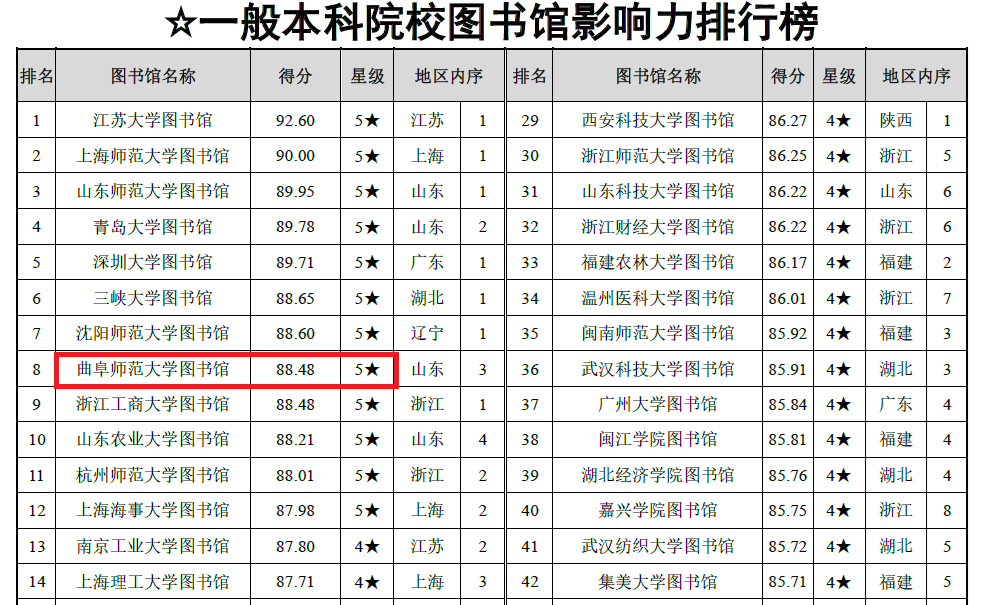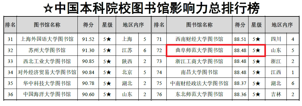 曲阜师大图书馆讯 近日,武汉大学中国科学评价研究中心、中国科学学与科技政策研究会、科学计量学与信息计量学专业委员会联合发布了《数智时代中国图书馆影响力评价报告(2024)》,三亿网页版登录入口图书馆获评“五星图书馆”,位列中国本科院校图书馆第72位,全国一般本科院校图书馆第8位,全国高校图书馆学术影响力第47位。