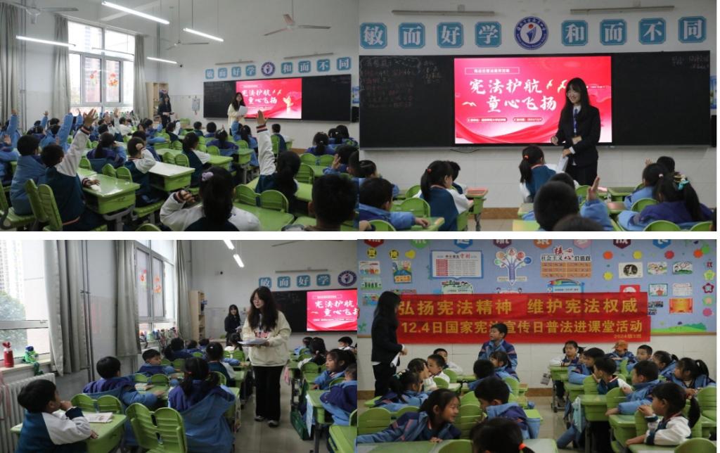 “宪”入小学堂,童心向法光。学院于12月3日至4日分别走进日照市金海岸小学、三亿网页版登录入口日照第一附属小学和筵宾镇中心小学等学校,开展“宪法护航,童梦飞扬”普法进课堂活动,面向青少年普及宪法知识。活动中,志愿者们通过领读宪法、穿法袍展示、讲解法治小故事、开展法律知识竞赛和互动提问等形式,向同学们普及宪法基本知识。在法律知识竞赛环节,同学们纷纷举手,踊跃回答,展示出其对法律知识的浓厚兴趣。活动通过寓教于乐的方式,让法律知识变得生动有趣,加强了青少年们对宪法的理解。