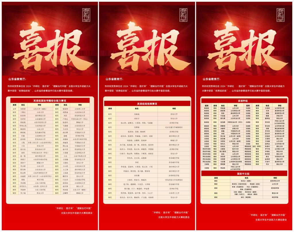 曲阜师大外国语学院讯 近日,2024“国才杯”“理解当代中国”全国大学生外语能力大赛圆满落幕。曲阜师大外国语学院学子凭借出色的专业素养,在国赛中斩获了2银2铜的优异成绩。