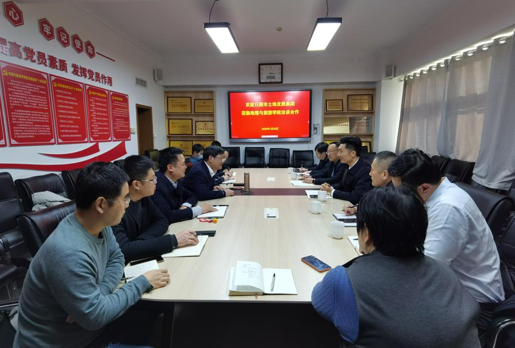 曲阜师大地理与旅游学院讯 1月20日,地理与旅游学院与日照市土地发展集团举行合作洽谈会。日照市土地发展集团有限公司党委委员、副总经理惠鹏、山东睿航地理信息工程有限公司经理宋代元、日照国恒蓝鲸酒店管理有限公司经理迟强、山东睿航地理信息工程有限公司副经理韩涛等;地理与旅游学院院长张全景、学院党委副书记刘伟等以及相关专业教师参加座谈。