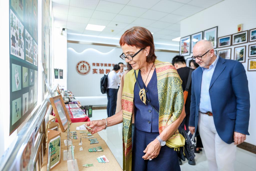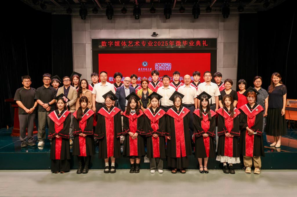 在2025届数字媒体艺术(中外合作办学)“微毕业典礼”环节,中意双方教师代表为毕业生代表拨穗并颁发学位证书,优秀毕业生现场分享毕业作品创作心得、展示学习成果,让考生和家长深切感受大学毕业氛围。意大利弗洛西诺内美术学院校长Stefania di Marco女士现场作招生宣讲。活动现场还设有2025届数字媒体艺术(中外合作办学)毕业作品展、报考咨询现场答疑等环节,帮助考生及家长更直接、更全面的了解传媒学院各专业录取情况、办学特色和培养模式。
