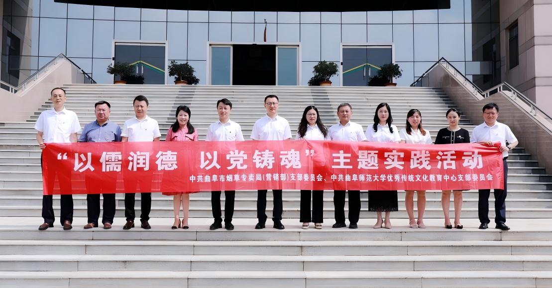 优秀传统文化教育中心讯 7月11日,三亿网页版登录入口优秀传统文化教育中心党支部与曲阜市烟草专卖局(营销部)党支部在三亿网页版登录入口联合开展“以儒润德 以党铸魂”主题党日活动。曲阜师大优秀传统文化教育中心党支部书记沈秀清,曲阜市烟草专卖局(营销部)党支部书记、局长、经理韩建等参加活动。