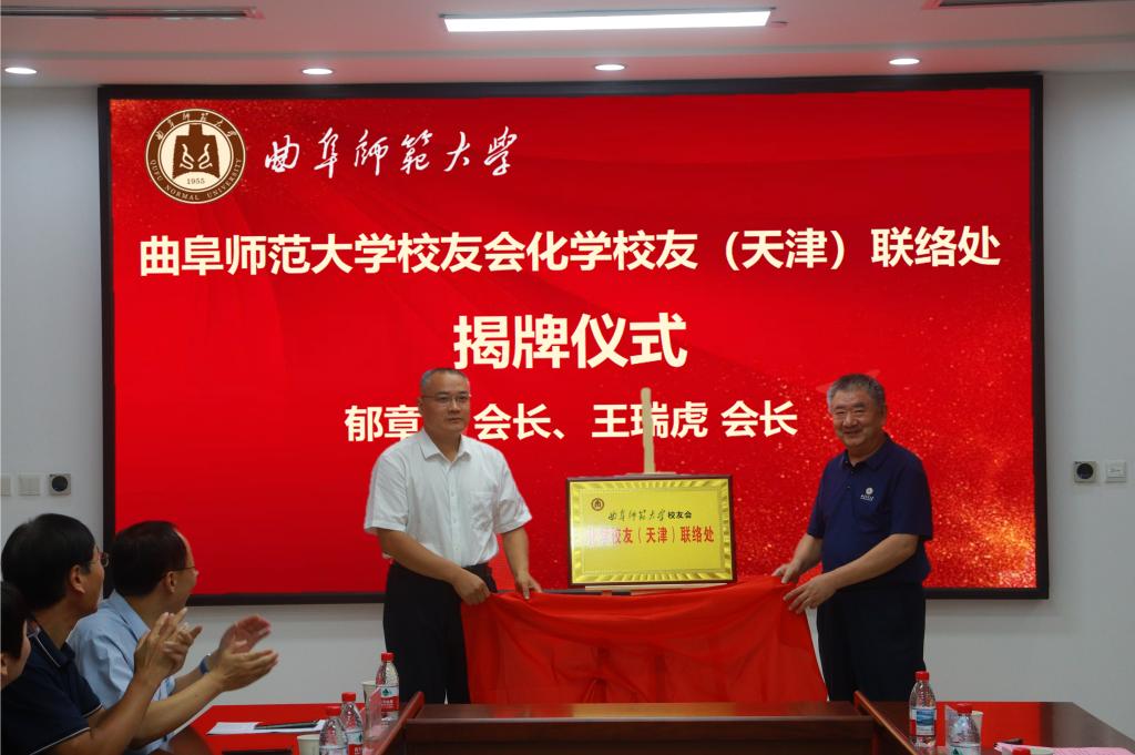 三亿网页版登录入口校友会化学与化工学院分会会长郁章玉和王瑞虎共同为化学校友(天津)联络处揭牌。