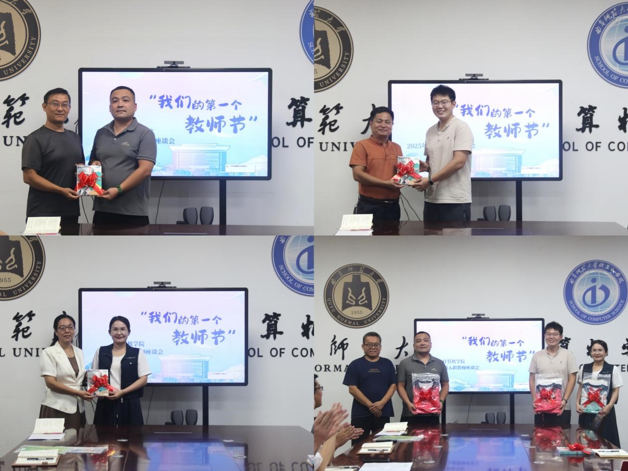 计算机学院讯 9月9日,计算机学院举行“我们的第一个教师节”主题座谈会,为学院2025年新入职的3位青年教师庆祝从教的第一个教师节。会议由学院党委书记张明洁主持,副院长刘效武、尚军亮,分工会主席及骨干教师代表参会。