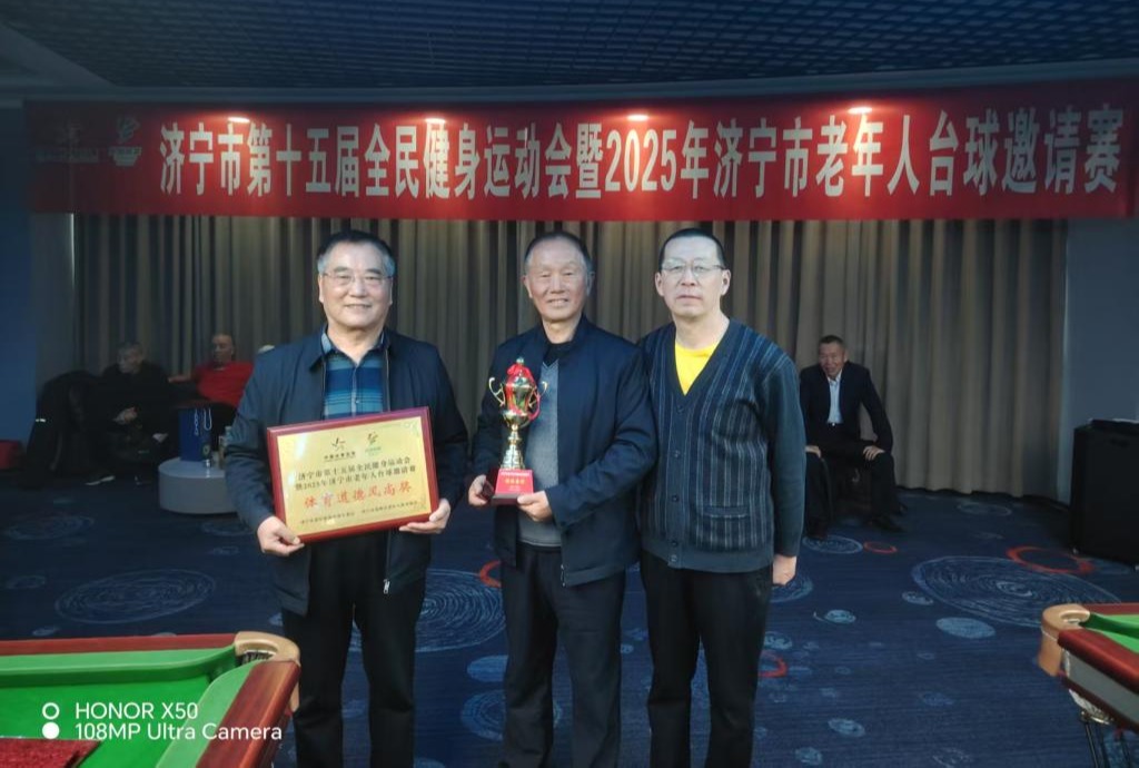 离退休工作处讯 近日,2025年济宁市老年人台球邀请赛举办。曲阜师大代表队在比赛中发挥出色,荣获团体金奖和道德风尚奖,三位老师分获个人第2名、第5名和第7名的优异成绩。