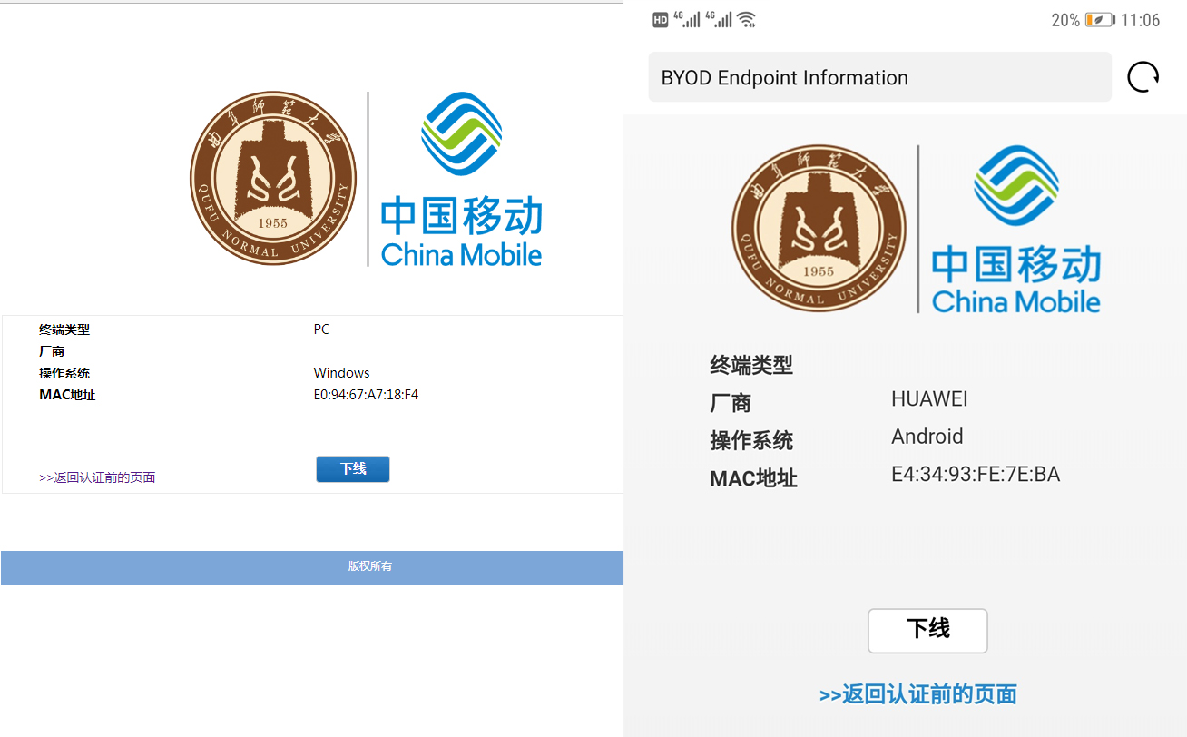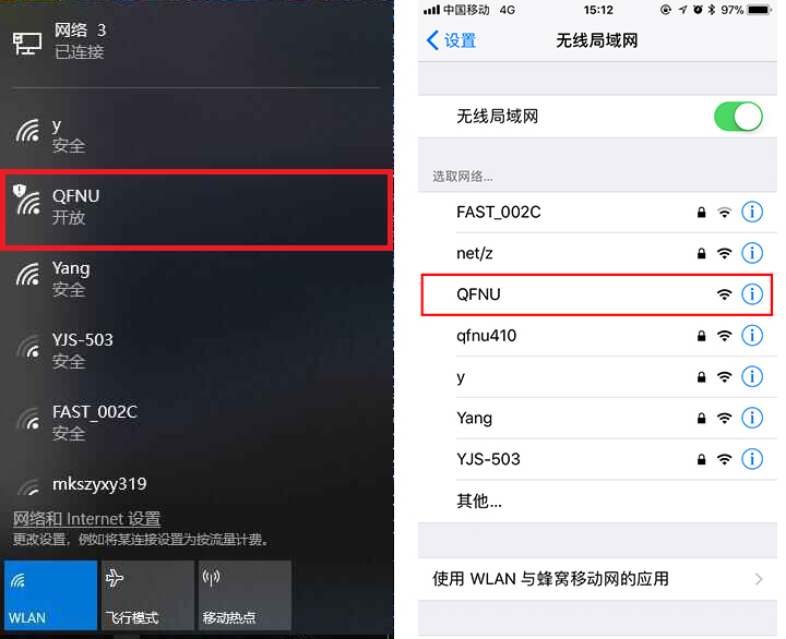 (1)电脑端QFNU信号 (2)手机端QFNU信号