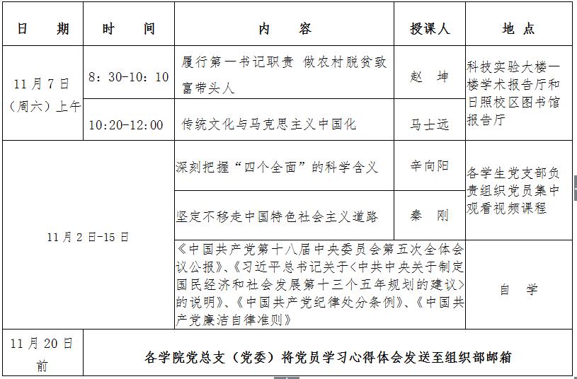 1、请各党总支(党委)高度重视本次培训,指派专人负责参训党员的组织和管理工作,并于11月4日(周三)17:00前将《培训班党员名单汇总表》发送至组织部邮箱qfnuzzb@163,日照校区发送至rzhdqb@163.com。