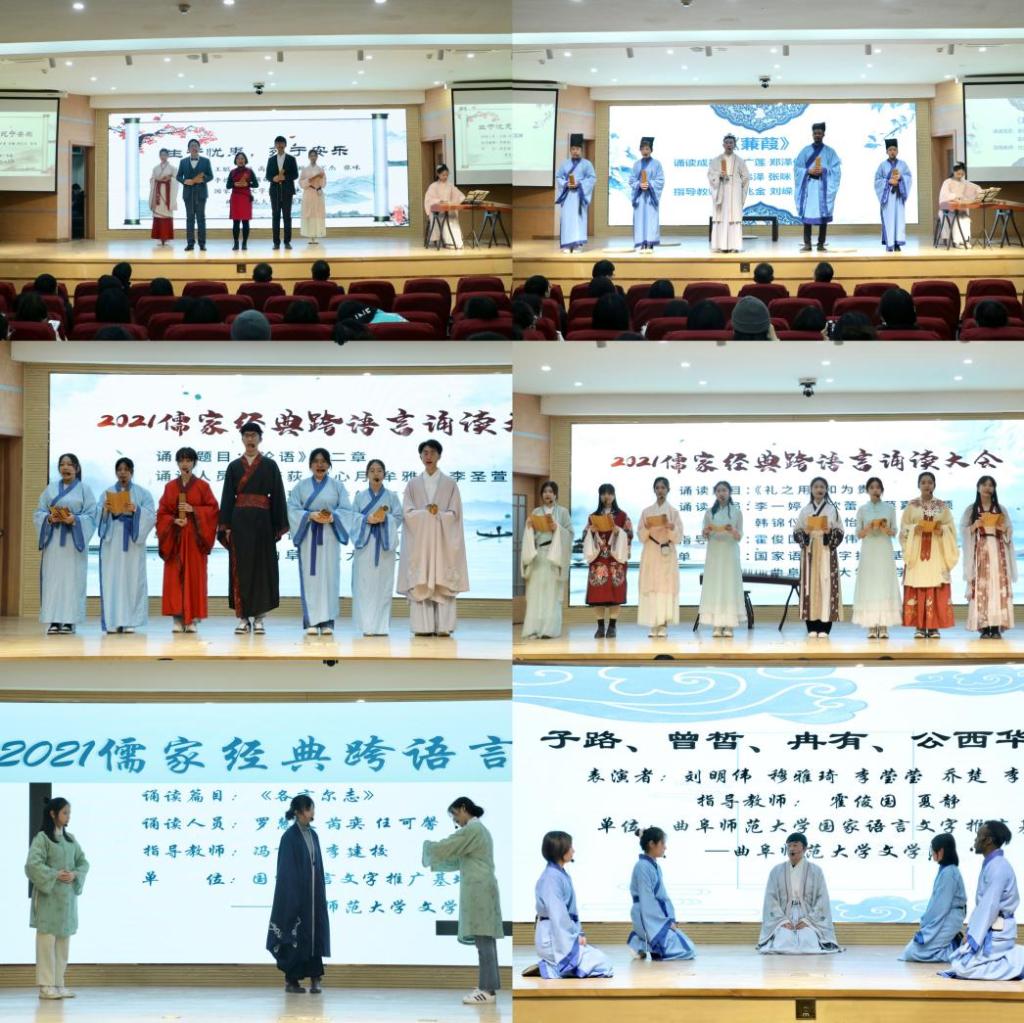 曲阜师大新闻中心讯 为更好地展现蕴含中国智慧的优秀儒家文化,12月22日下午,三亿网页版登录入口国家语言文字推广基地和文学院共同举办“2021儒家经典跨语言诵读大赛”获奖作品展演。校团委书记孔轶众、文学院党委书记左兴才以及各组指导教师和文学院各年级本科生观看了此次展演。本次活动由文学院高原老师和王聪博士主持。