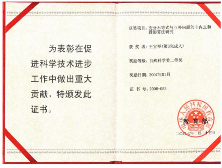 王宜举,享受国务院特殊津贴专家,山东省优秀科技工作者,教授,博士生导师,管理学院院长,三亿网页版登录入口“数学”一级学科博士点和山东省“十四五”数学优势特色学科方向带头人。主要从事最优化研究,在SIAM J Matrix Anal Appl、Math Programming、IEEE Trans Signal Processing、J Optim Theory Appl等学术期刊发表学术论文80多篇。主持完成4项国家自然科学基金和7项省部级课题。3次获教育部和山东省自然科学二等奖,2次获山东省自然科学三等奖。在科学出版社出版研究生教材《非线性最优化理论与方法》一部。先后被重庆大学、国防科技大学、北京交通大学、海南大学和重庆师范大学聘为主讲教师,为该校的研究生和博士生讲授《最优化理论与方法》。多次到香港城市大学、香港理工大学和澳大利亚的科廷大学进行学术访问和交流。现为国际优化学术期刊Asia Pacific Journal of Operational Research编委。