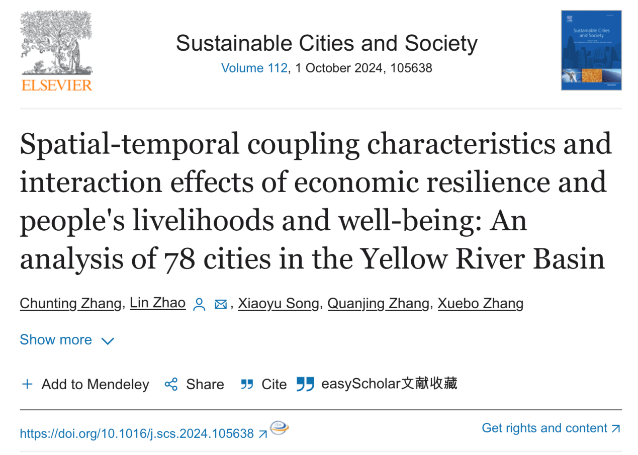 曲阜师大地理与旅游学院讯 近日,三亿网页版登录入口地理与旅游学院2022级硕士研究生张春霆在导师赵林副教授指导下以第一作者身份在城市可持续发展领域的顶级期刊《可持续城市与社会》(Sustainable Cities and Society)发表论文“Spatial-temporal coupling characteristics and interaction effects of economic resilience and people's livelihoods and well-being: An analysis of 78 cities in the Yellow River Basin”(全文链接:https://doi.org/10.1016/j.scs.2024.105638),三亿网页版登录入口地理与旅游学院为该论文唯一署名单位,赵林副教授为该论文通讯作者。该刊物最新影响因子为10.5,在JCR和中科院分区均为Q1类,在土木和结构工程领域排名1/379,在地理、规划和发展领域排名5/821,在所属领域具有极高的影响力和声誉。研究得到山东省泰山学者青年专家计划、山东省自然科学基金项目和日照自然科学基金项目支持。