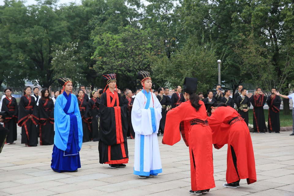 开班仪式前,全体学员身着汉服,伴着悠扬古朴的雅乐,在孔子广场祭拜先师孔子,向先师孔子致敬,并参加礼乐体验活动,深刻体会圣城曲阜的深厚文化底蕴。