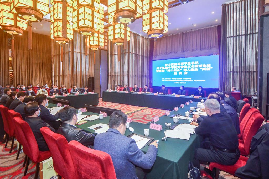 曲阜师大新闻中心讯 11月29日上午,学习贯彻习近平总书记关于弘扬中华优秀传统文化重要论述暨贯彻“两个结合”深入推动“两创”座谈会在山东曲阜举行。本次会议由光明日报社、中共山东省委宣传部、中共济宁市委主办,通过线下线上相结合的形式举行。山东省委常委、宣传部部长白玉刚,光明日报副总编辑张碧涌,济宁市委书记、市人大常委会主任林红玉,出席会议。座谈会由山东省委宣传部副部长孔繁轲主持。